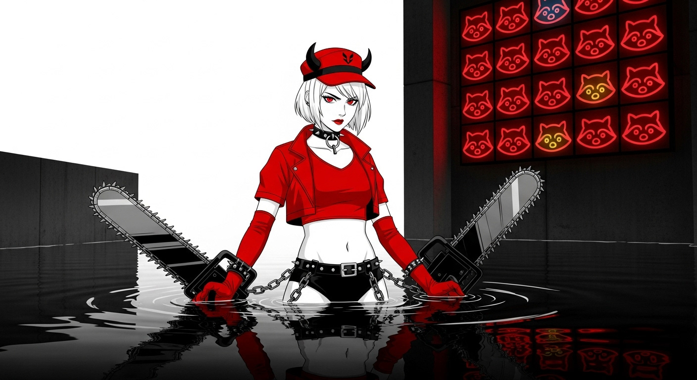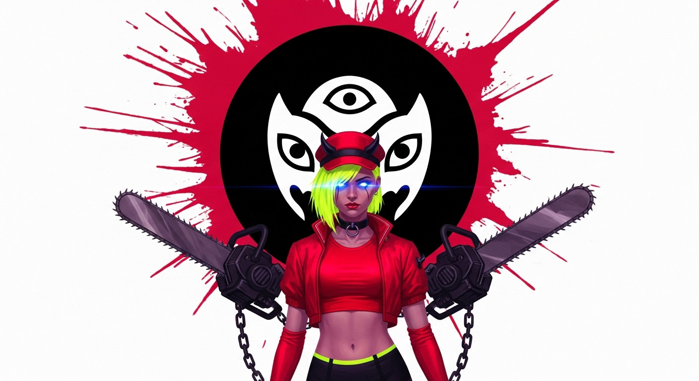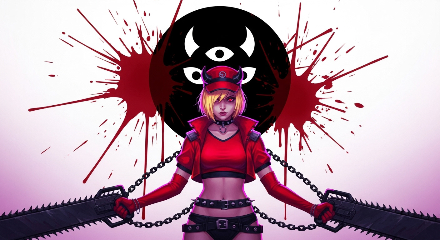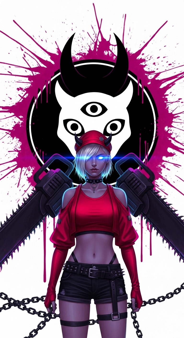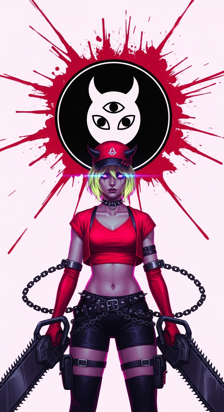 A visual detail of one of the primary characters from Chainsaw Devil-Girls, Vixen.