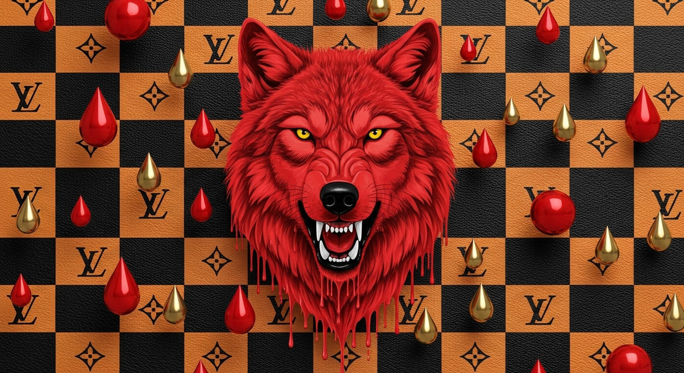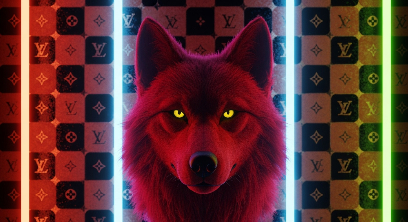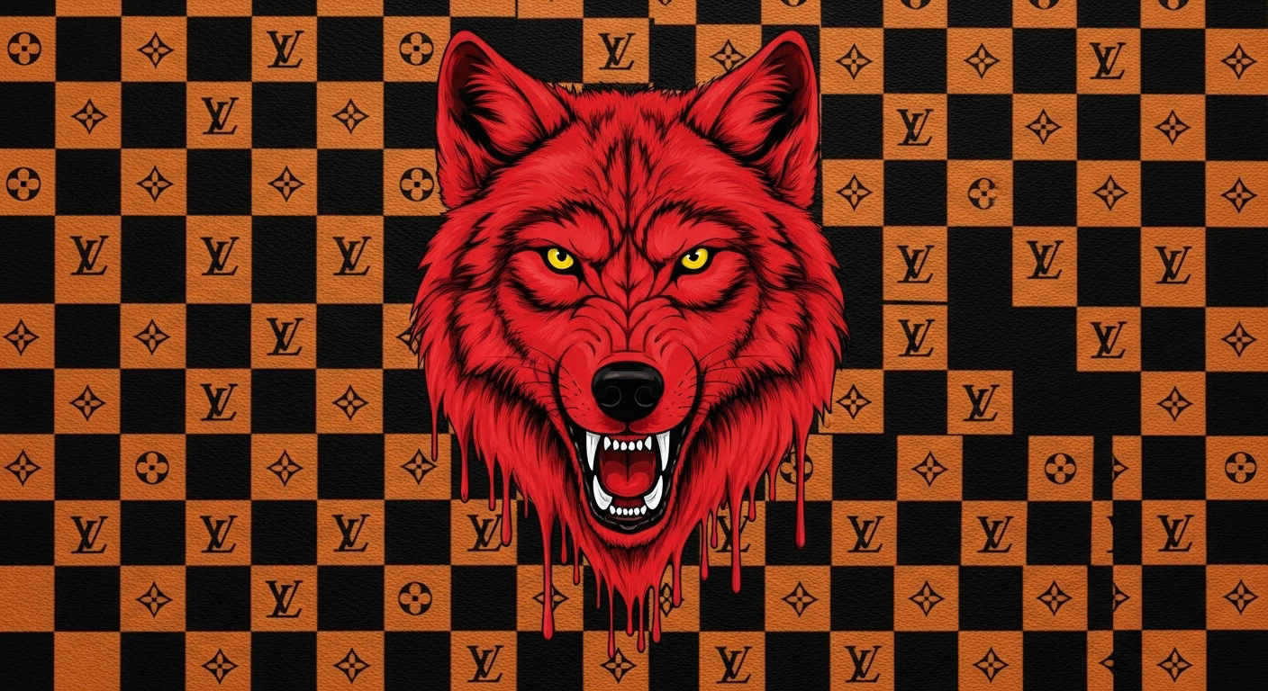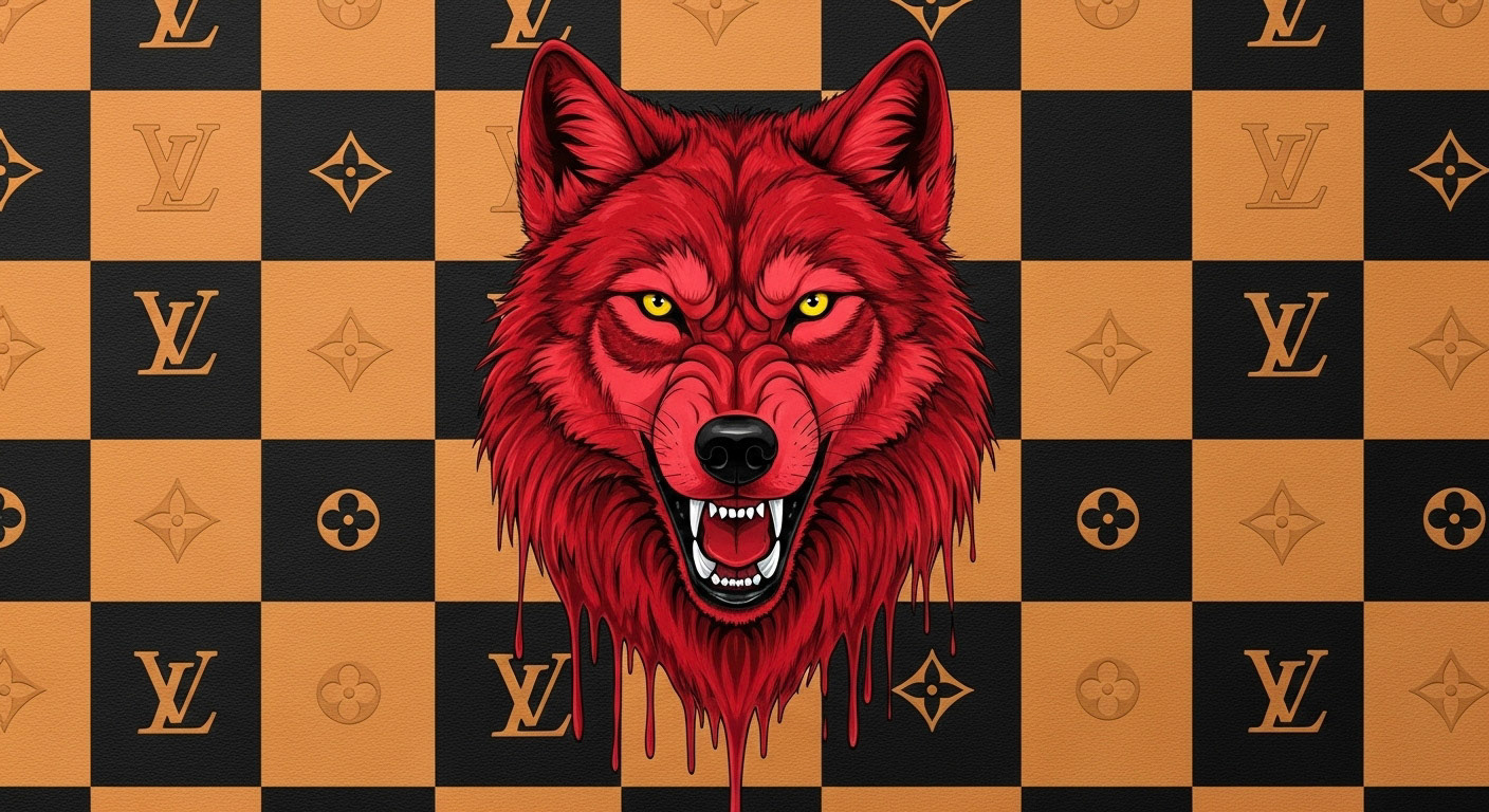 Seen here are the original images, created prior to the direct marketing cammusicpaign for an unrelated promotion. The three images depicting the Tex Avery style wolf against the obscure checkerboard backdrop became the source of inspiration for what would become Louis Vuittons Bludwolf.