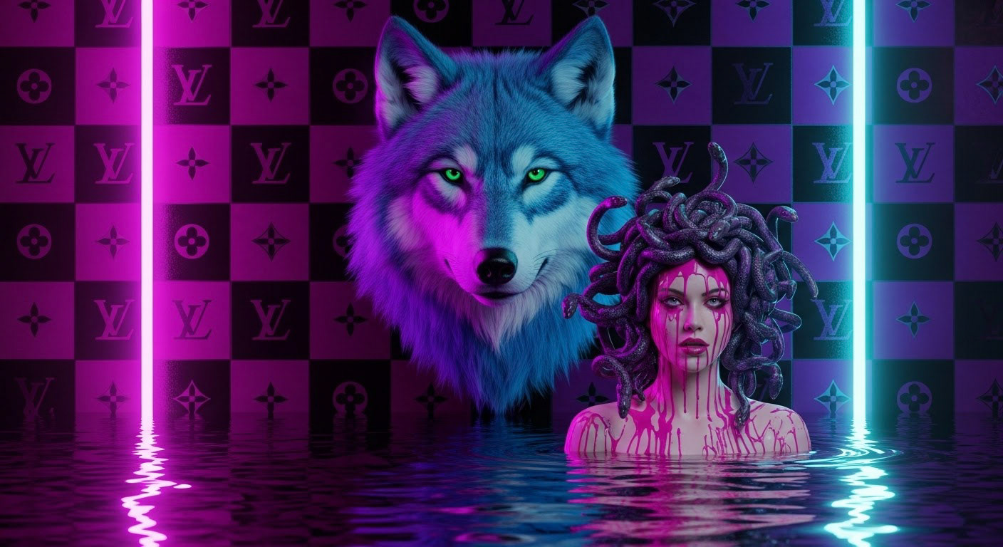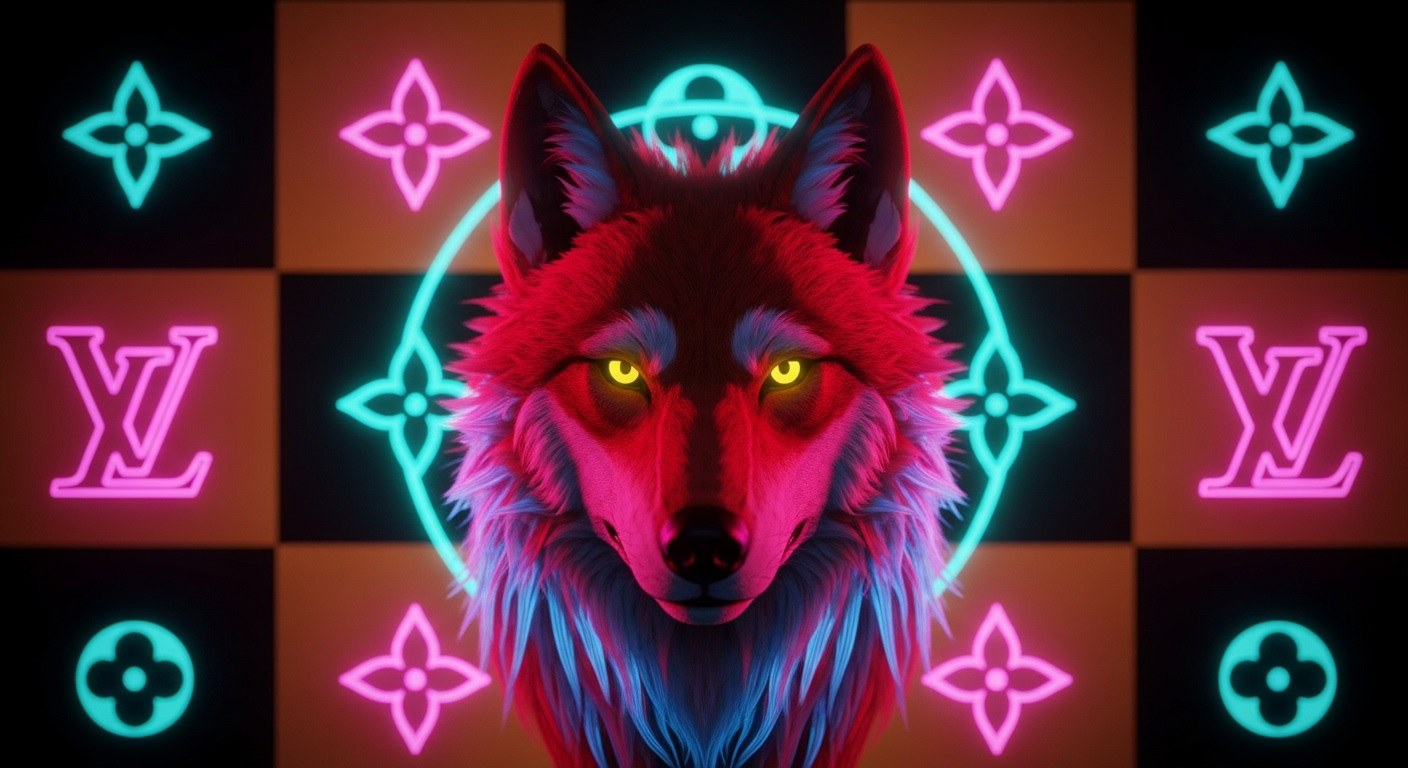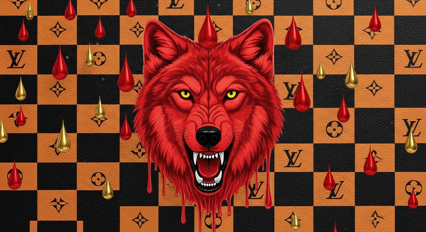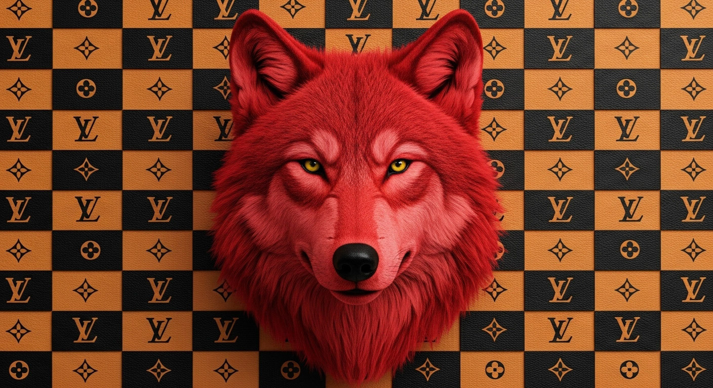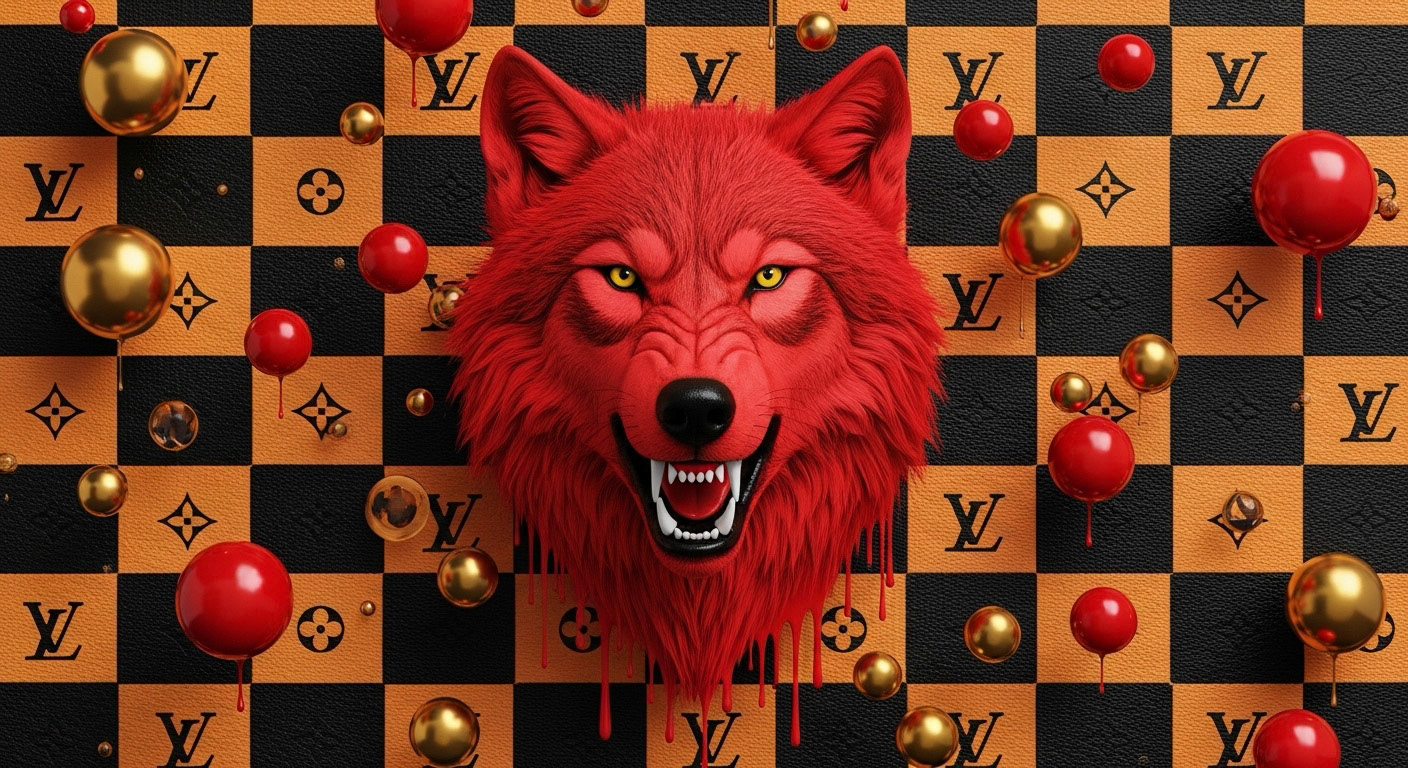 Seen here are the original images, created prior to the direct marketing cammusicpaign for an unrelated promotion. The three images depicting the Tex Avery style wolf against the obscure checkerboard backdrop became the source of inspiration for what would become Louis Vuittons Bludwolf.