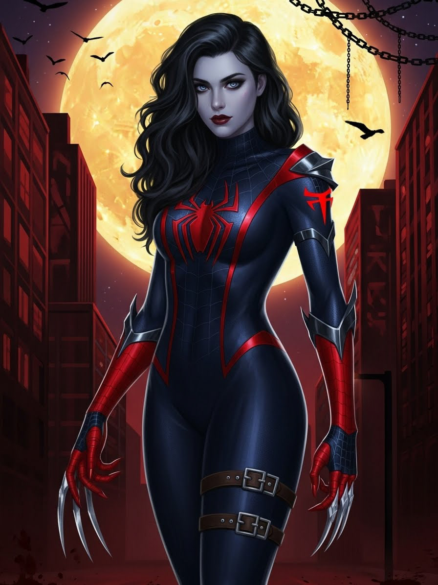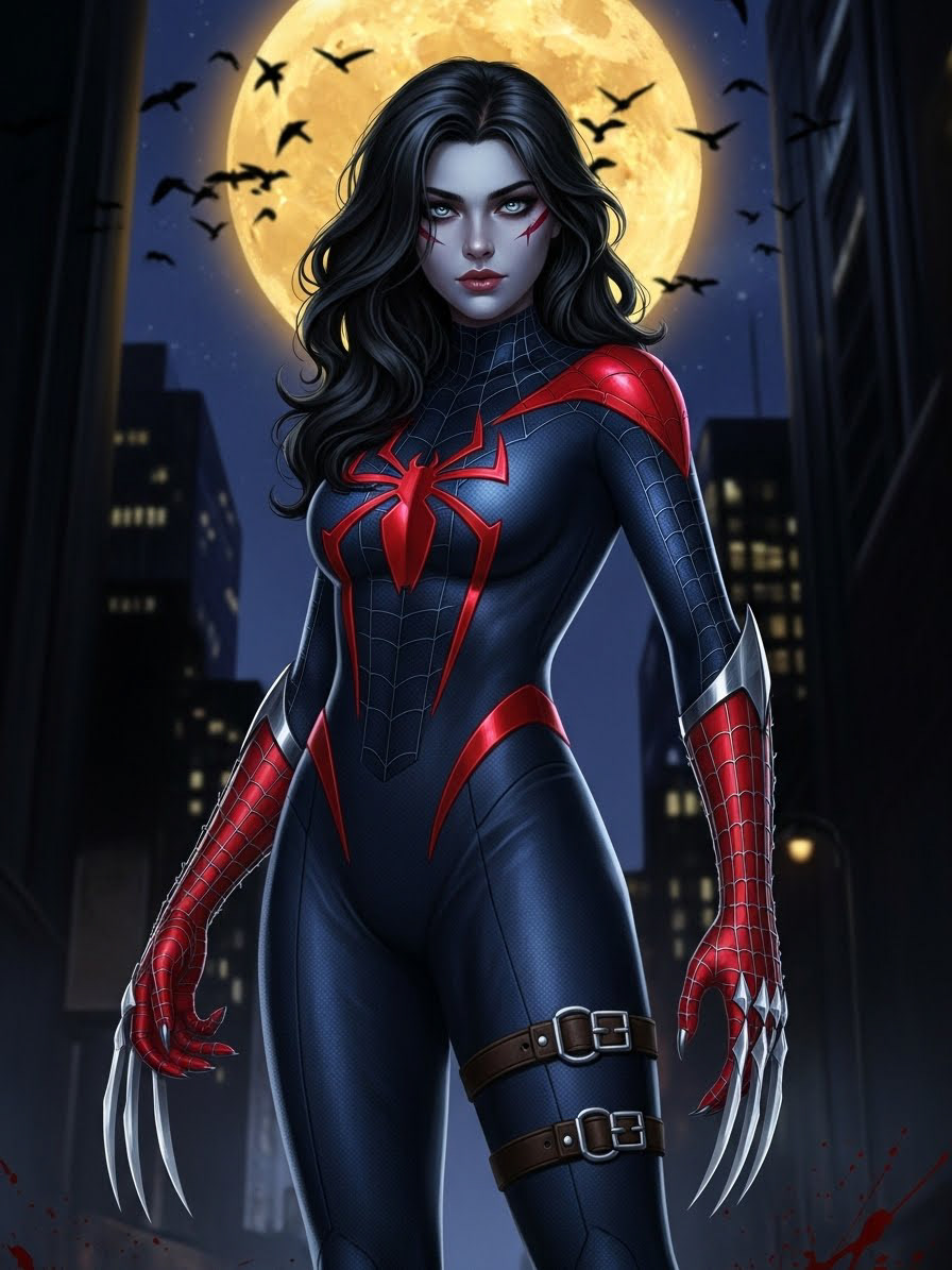 In her world her parents, Peter and Mary Jane, were killed at home in their bed late one night by one Kraven The Hunter, who found himself unable to murder the then just 7 years old Perigrime. He instead adopted her and raised her as his own teaching and training in his image.